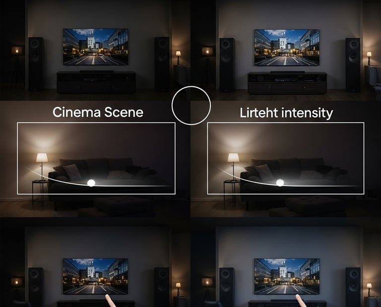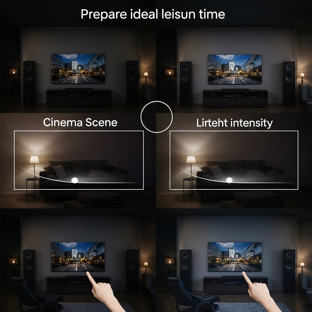 Escena Cine: prepara el ambiente ideal para disfrutar de tus momentos de ocio, ajustando las luces a tonos y niveles de intensidad específicos con un solo toque.