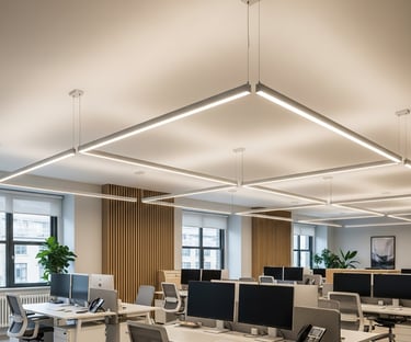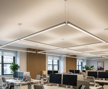 Mejora la productividad y el bienestar en los espacios de trabajo mediante sistemas de iluminación inteligente. Automatizamos la iluminación para crear ambientes eficientes, cómodos y adaptados a cada área de la oficina.