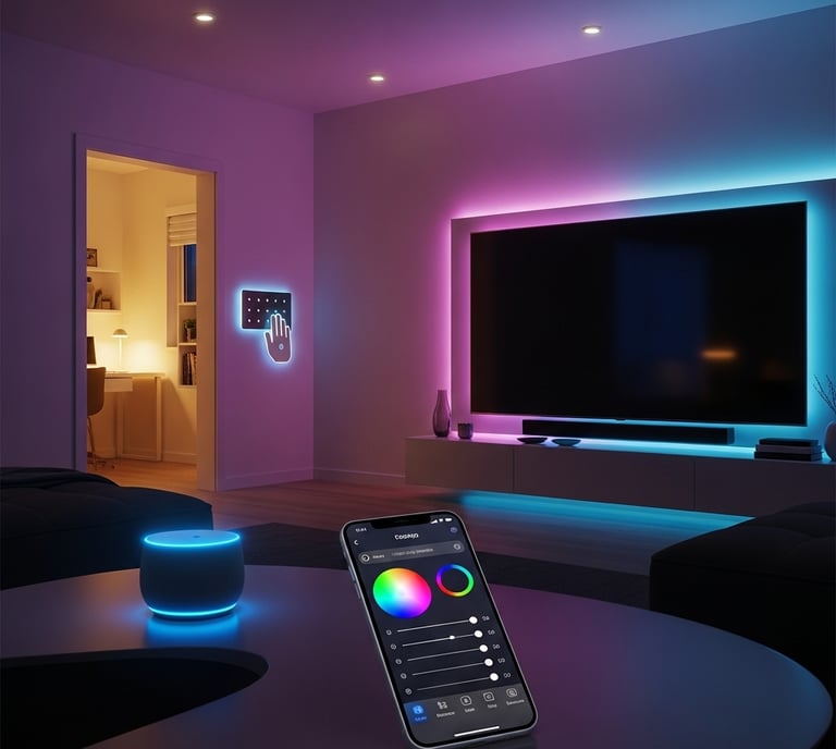 Nuestros sistemas de iluminación inteligente combinan control manual, acceso remoto y control por voz para crear experiencias de iluminación a medida. Utilizamos luces RGBW e interruptores inteligentes para adaptar cada ambiente a tu estilo de vida.